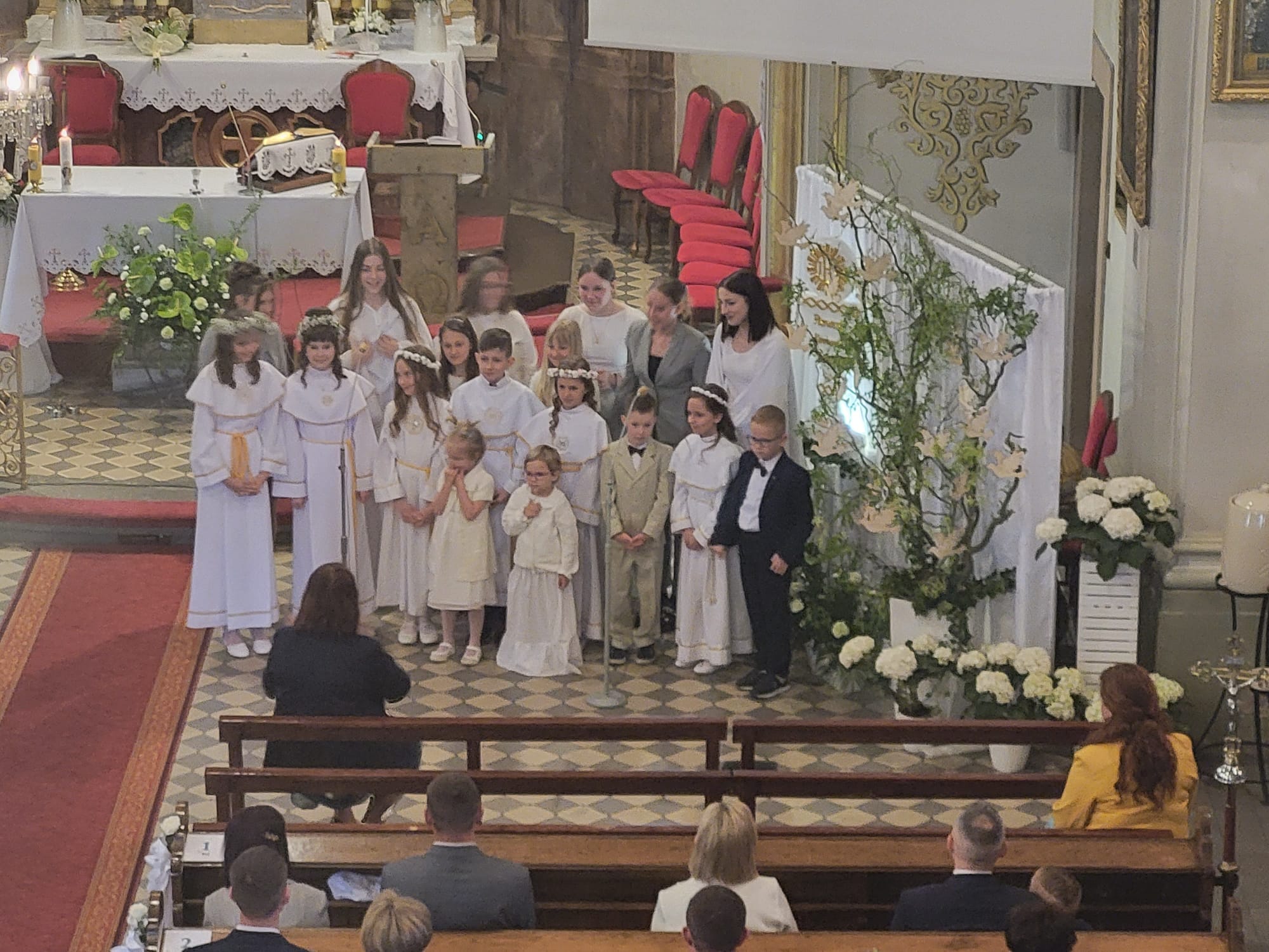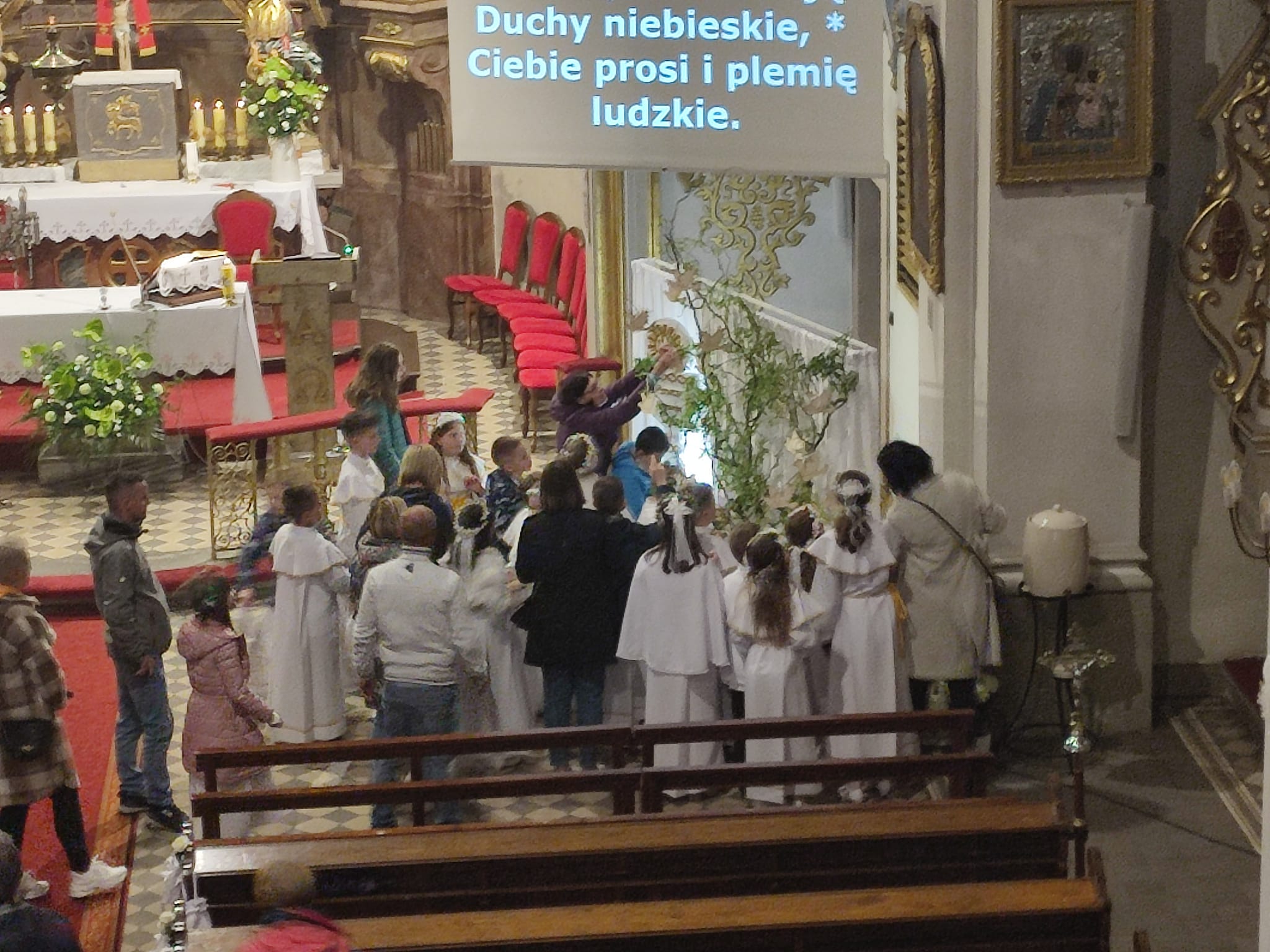 W uroczystym dniu Pierwszej Komunii Mszę Świętą uświetnił nasz chór parafialny Gloria oraz schola dziecięco-młodzieżowa. Cała parafia wspierała dzieci i ich rodziny modlitwą.