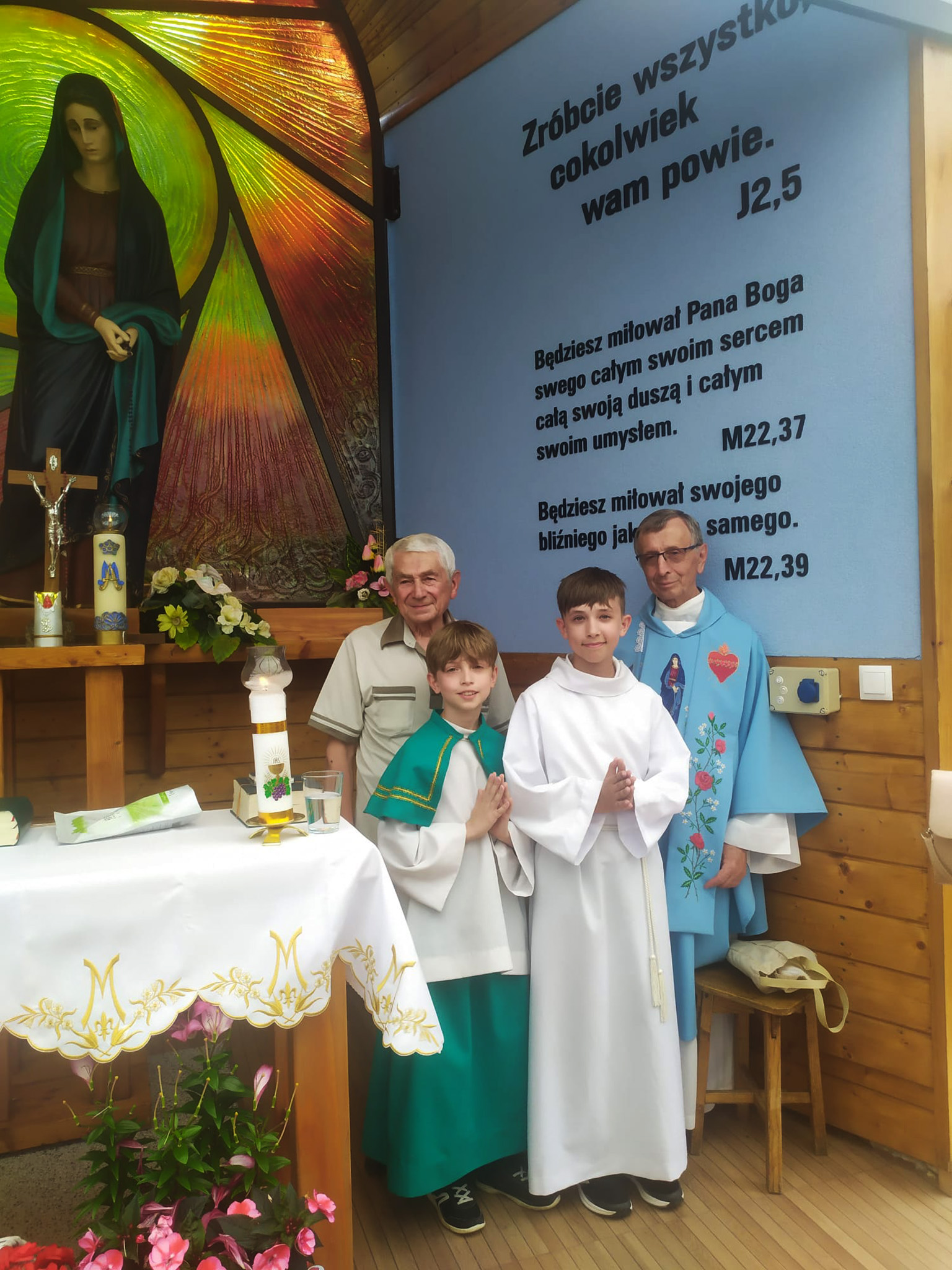 Pierwsza niedziela lipca w 2025 roku i wieka radość w modlitewnym skupieniu, bowiem salezjanin, ojciec Jan Bury (rodowity istebnianin), a już pół wieku nieprzerwanie wykonujący zadania misyjne w Japonii, odwiedził naszą Kaplicę. Ojca Jana zaprosiła do kaplicy Pani Teresa - też rodowita istebnianka.